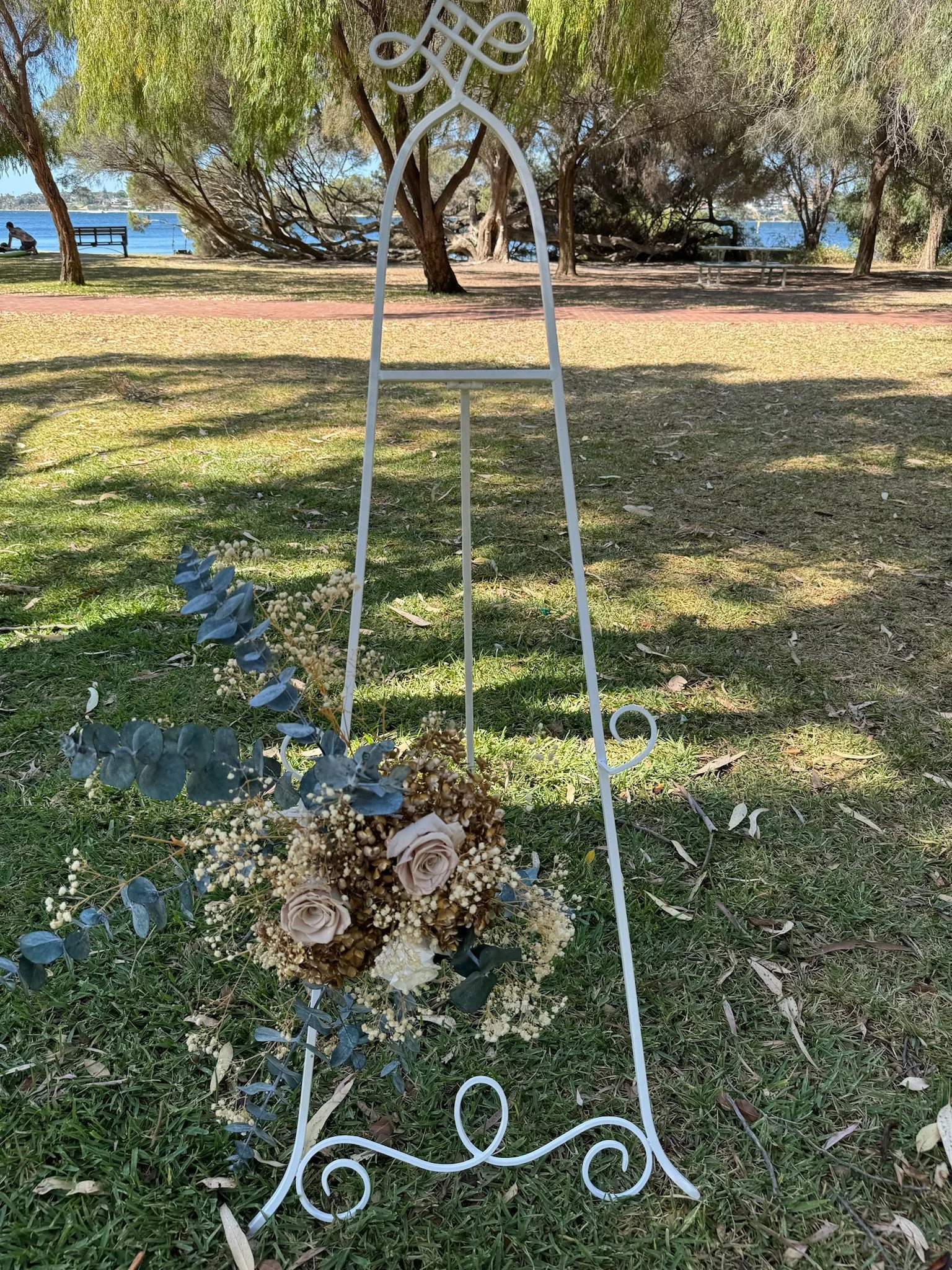 Fantastic for any event signage. Metal structure with stylish preserved flowers.